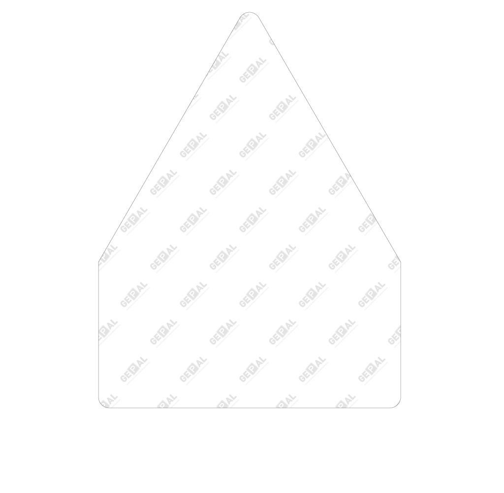 Blanco bord VLAK, 70driehoek met onderbord 60cm, Wit Klasse 3 v.v. afgeronde hoeken R=25